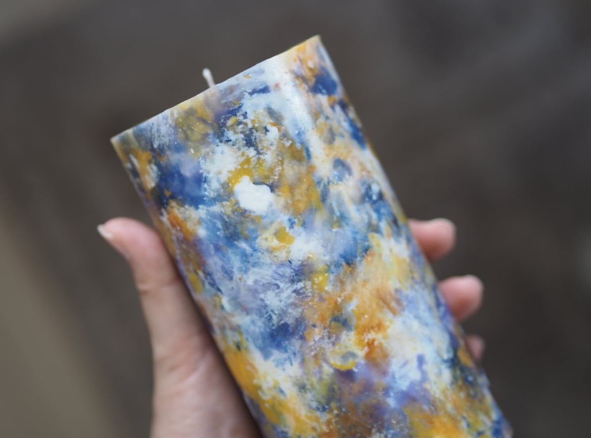 秋の景色を切り取ったような、深みのあるマーブル模様のキャンドルです。